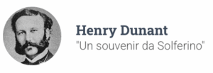 Lì si trova anche un cittadino svizzero, Jean Henry Dunant, venuto ad incontrare per i suoi affari Napoleone III. Egli si ritrova coinvolto nella terribile carneficina, aggravato dall’”inesistenza” della sanità militare. Rimane talmente colpito dalla situazione che decide di descrivere quanto stesse accadendo in quello che diventerà, poi, il suo testo fondamentale: “Un Souvenir de Solferino”, tradotto in più di 20 lingue. Dall’orribile spettacolo nasce in Dunant l’idea di creare una squadra di infermieri volontari preparati, il cui operato potesse dare un apporto fondamentale alla sanità militare: la Croce Rossa.